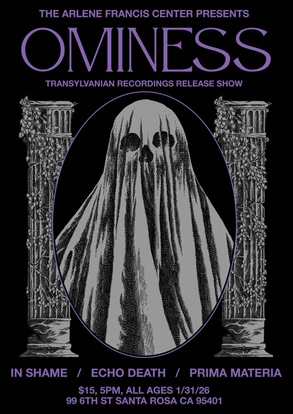Transylvanian Recordings Release Show Transylvanian Recordings release show featuring Ominess with In Shame, Echo Death and Prima Materia . This is a matinee show, so come early. Doors at 5 ominess Echo Death Prima Materia