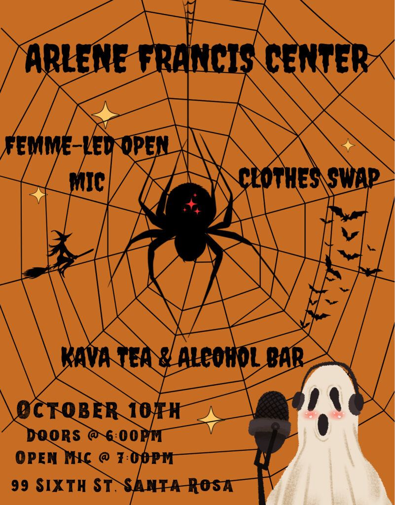 With a playful Halloween twist, the evening invites you to dress the part, share your art, and connect with a vibrant, supportive community. Whether you’re swapping, singing, or coming to vibe, this night is about uplifting femme energy and seasonal magic.