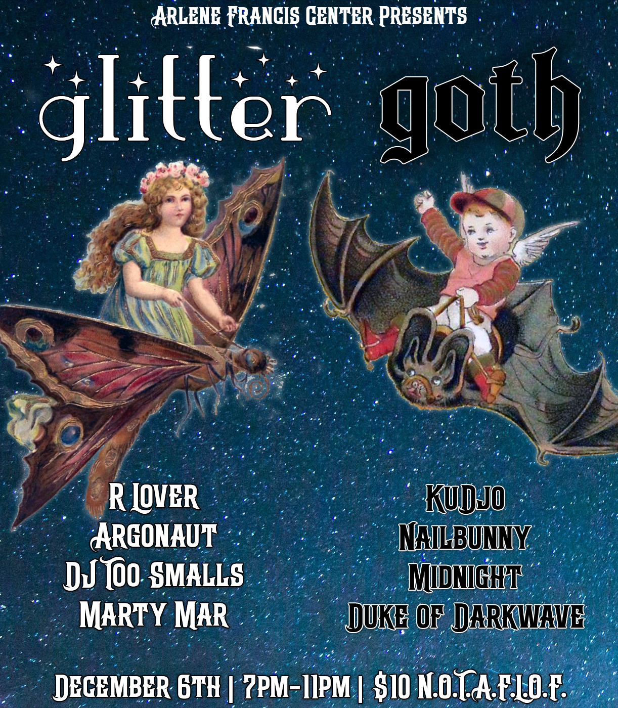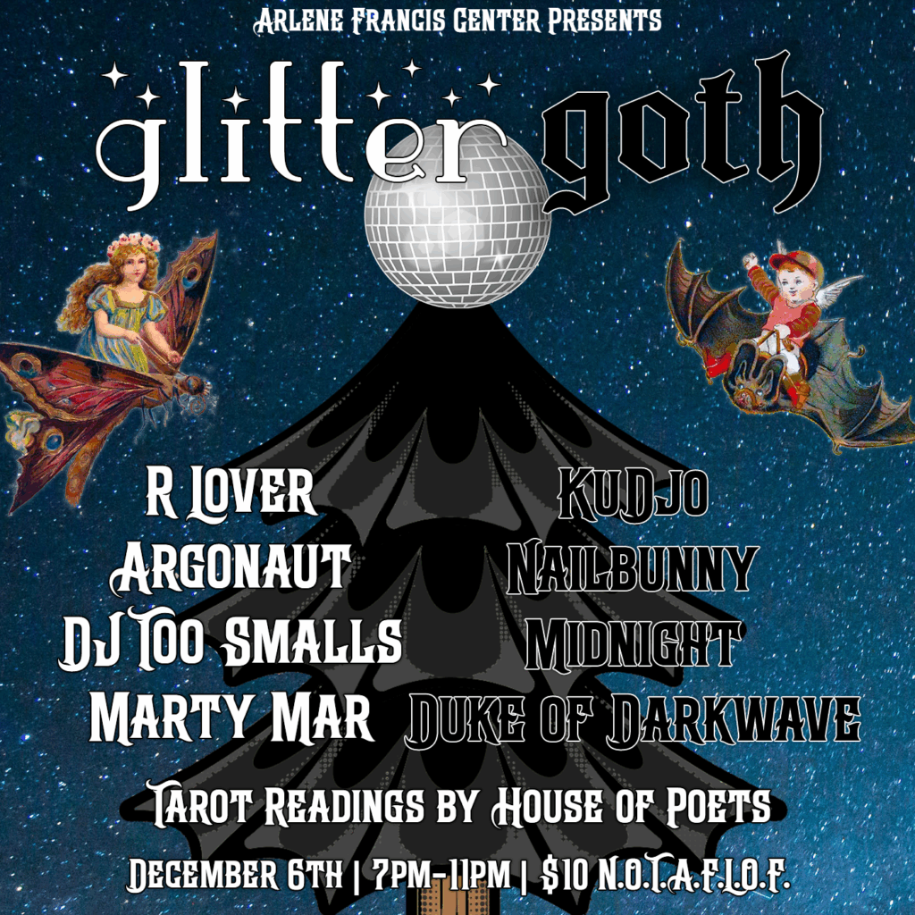 #glittergoth #glittergothclub #postpunk #deathrock #darkwave #industrialmusic #gothrock #synthpop #housemusic #techno #ebm #disco #funk #arlenefranciscenter #tacosdelgranmac #djs #dj #dancenight
